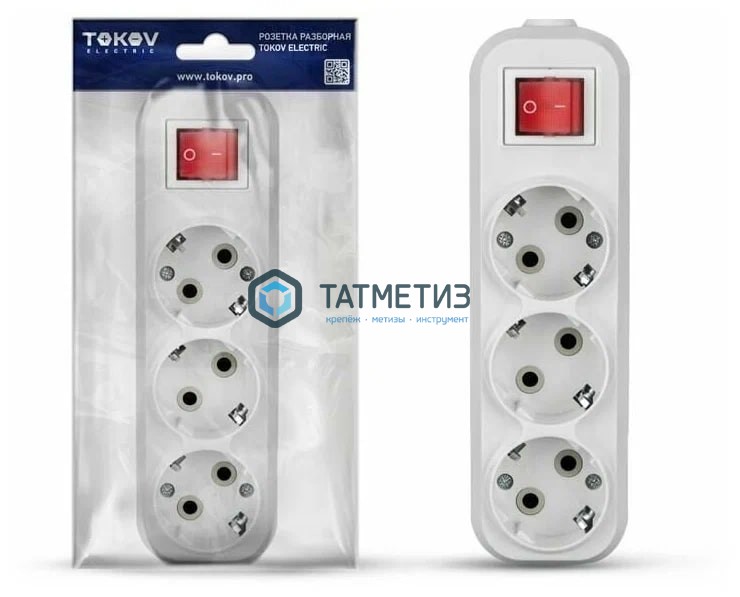 Колодка удлинителя 3-м с/з АВС-плас 16А с выкл.бел. TOKOV ELECTRIC