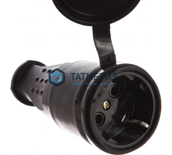 Каучуковый штепсельный однофазный разъем с заглушкой UNIVersal 602228 - силовая розетка, отвечающая высоким требованиям защищенности электросоединений при эксплуатации на промышленных участках, строительных площадках, на открытом воздухе на даче и т.д.