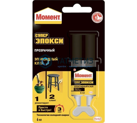 Универсальный эпоксидный клей Момент Супер ЭПОКСИ 6 мл шприц C0036331 804437, который застывает за 3 минуты.