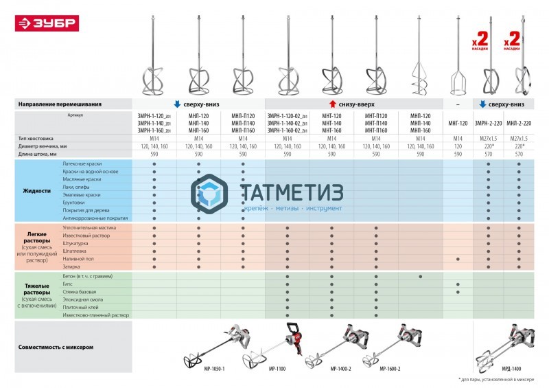 Технические характеристики строительного миксера ЗУБР МР-1400-2 |