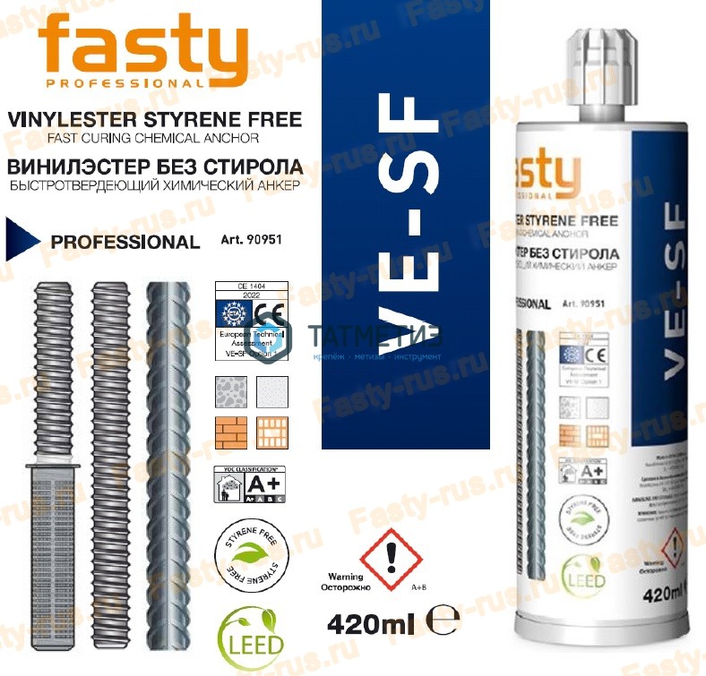 Хим. анкер FASTY VE-SF картридж 420 мл + 2 смесителя, винилэстер без стирола