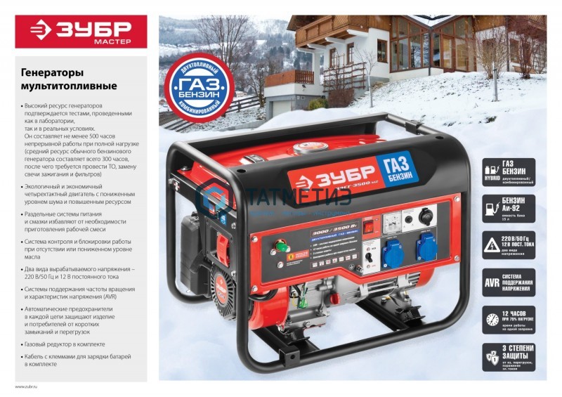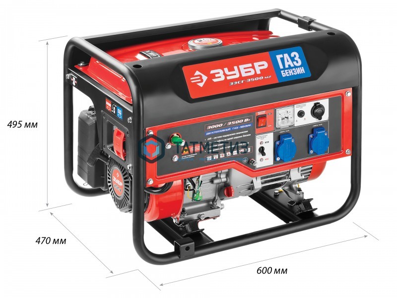 Генератор гибридный (бензин / газ), 3500 Вт, ЗУБР